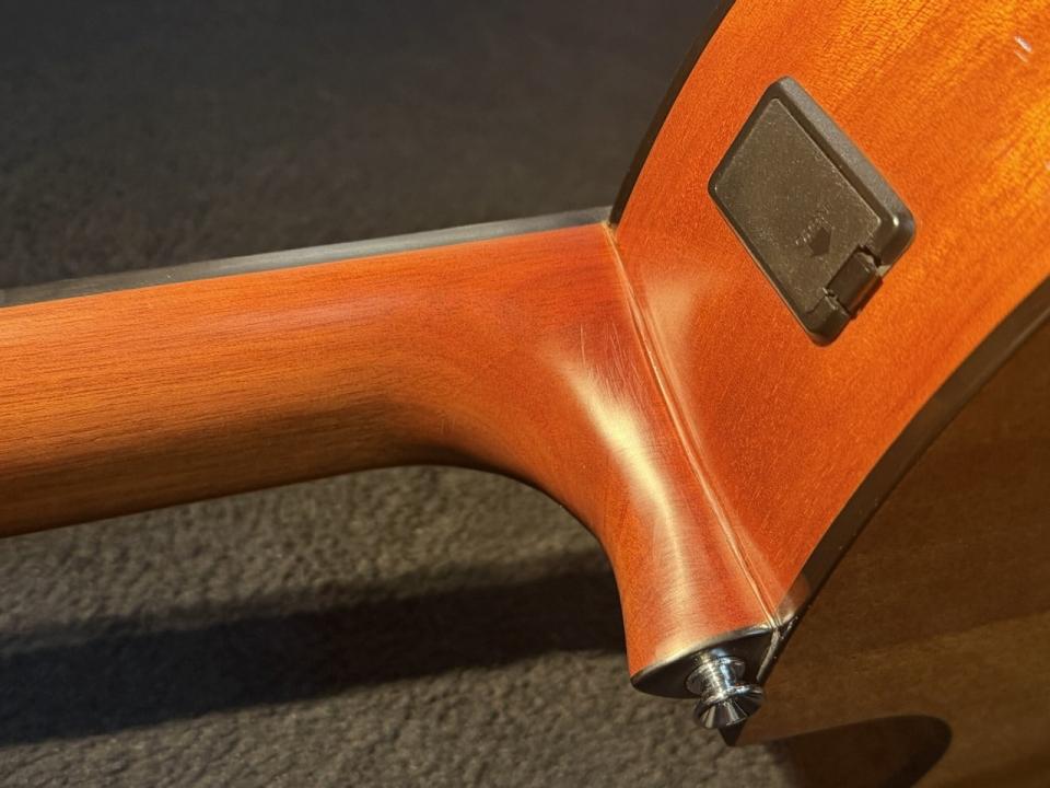 ナット幅は52mm。650mmスケール。カッタウェイ仕様ですのでハイポジションを使用してのソロワークにもアドヴァンテージがございます。