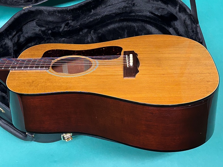 ギルドは、もともと1952年にニューヨーくで楽器販売、教室を開いていたショップでしたが、1956年にエピホンがギブソン社に吸収合併したときに残った職人たちと工場の設備を引き取ってギターメーカーとしてスタートしました。1980年代中期まではマーチン、ギブソンと並ぶ人気ブランドで、著名なアーティストが多数使っていて、高い人気の楽器でした。しかし1986年に経営を売却、その後親会社がいくつか変わり、工場移転が続き、メインのモデルは中国製になってしまいました。近年、アメリカで再生産されるようになりましたが、80年代までのビンテージとは別物の楽器です。