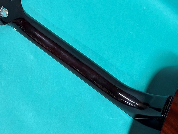 ネックは真っ直ぐに調整済みで、アジャストロッドはしっかりと効いていて、余裕があります。