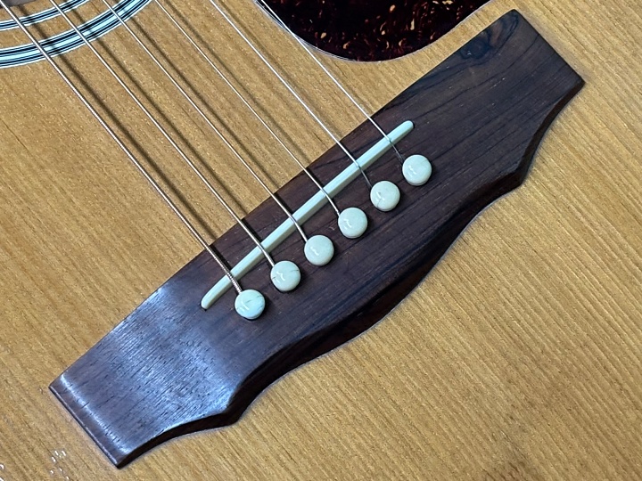 弦高は12フレット上で6弦2.4ミリ1弦1.6ミリと低めですが、テンションのあるギルドですので、このくらいでもパワフルでダイナミックな鳴りがあります。
