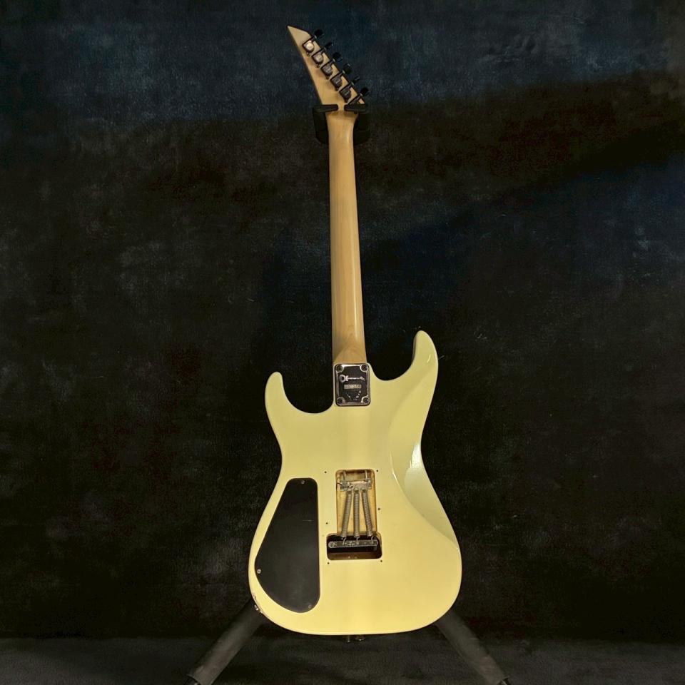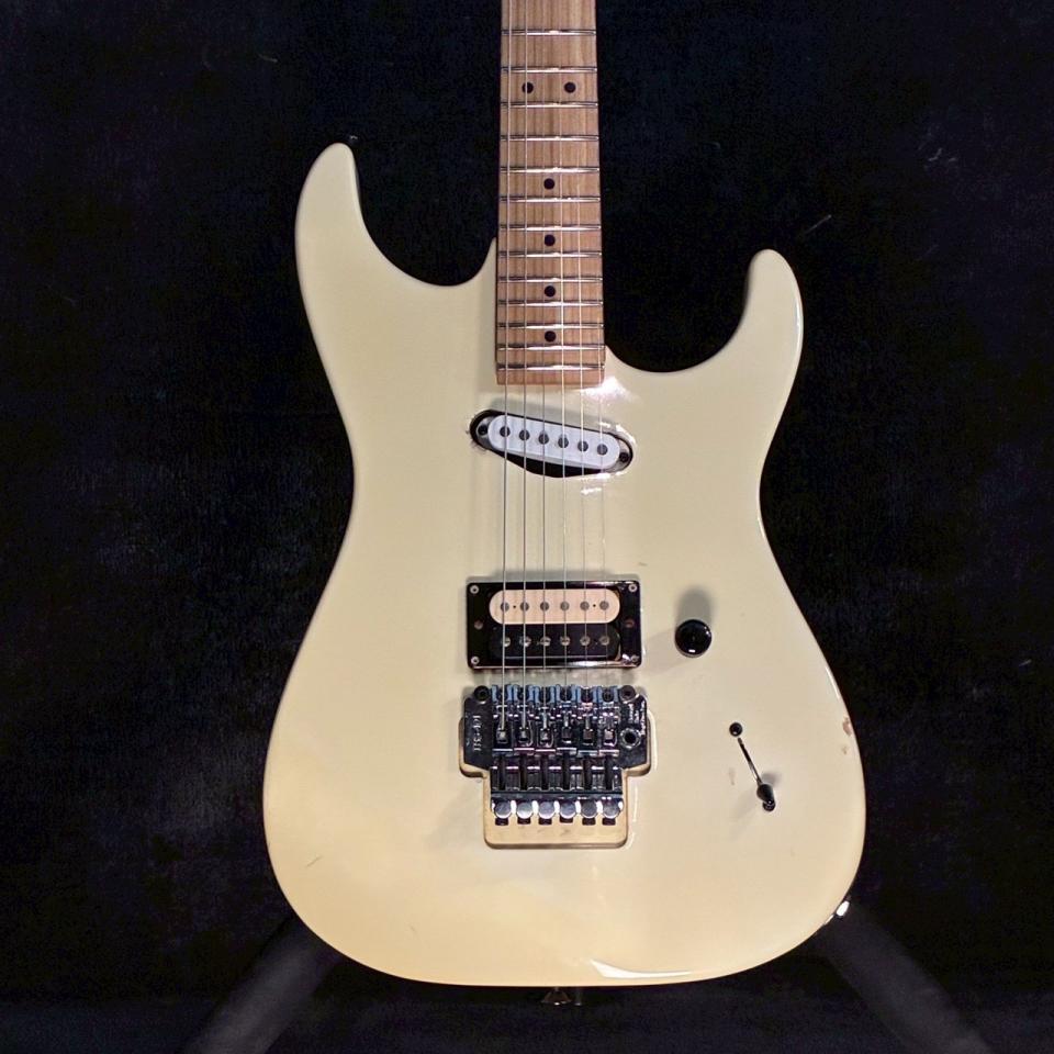 Whiteカラーのボディにシャープなシルエットを組み合わせたルックスは、まさに80年代らしい華やかさとストリート感を兼ね備えた印象です。現代のモダンギターとはまた異なる、時代特有の空気感を楽しめる一本と言えるでしょう。