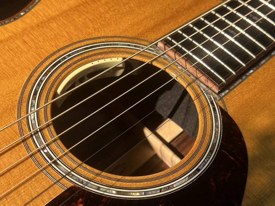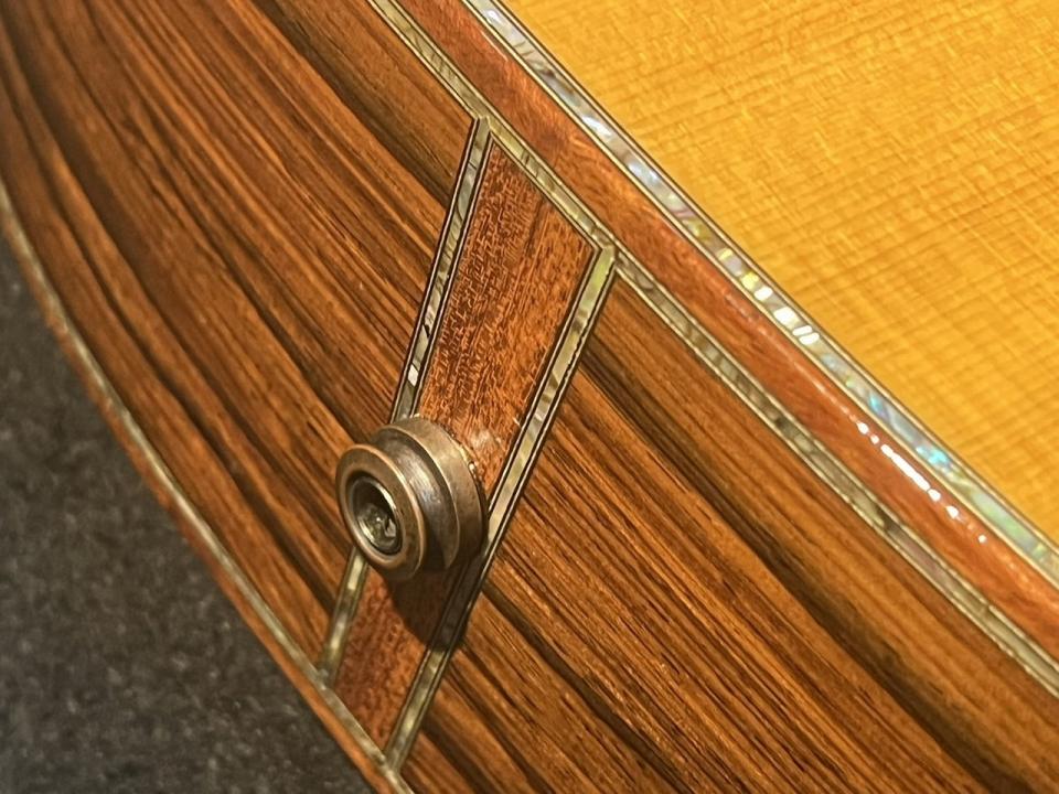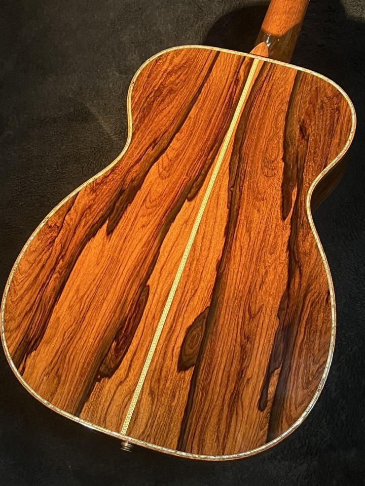 2015 NAMM Showに出品されたカスタムモデル!ポストハカランダと呼ばれるグアテマラローズウッドをサイド&バック、ヘッドプレートに採用し。バインディングにはアヴァロンでサンドウィッチされたキルテッドブビンガ。45スタイルのロゼッタにアヴァロンのトーチインレイ!何より高級家具のような特長的な板目のバック杢目。見惚れてしまう美しさ!