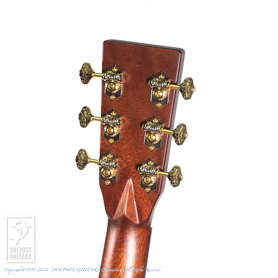 OMを一回り大きくしたグランドオーディトリアムシェイプは、適度な厚みで抱えやすさと低域の特性を併せ持った美味しいとこどりのボディ。輪郭のハッキリとした高音域とタイトな低音はフィンガースタイルに見事にマッチするでしょう。