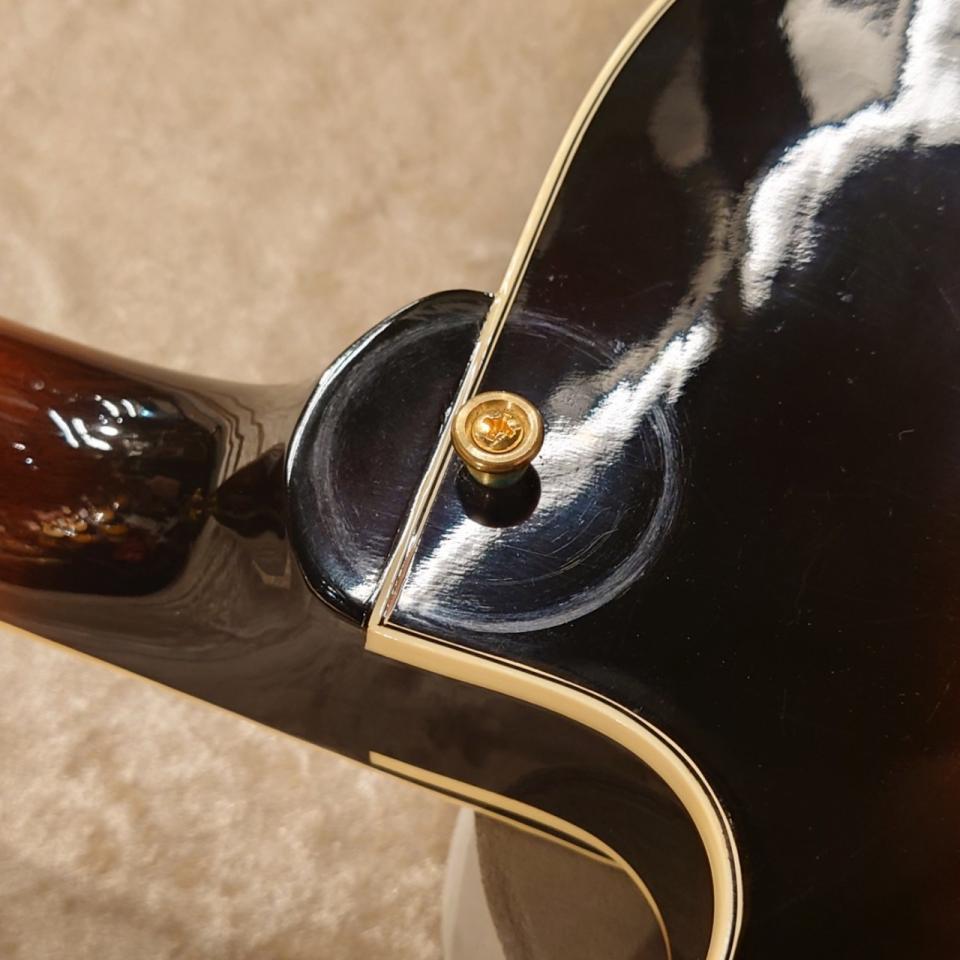ES-175よりも一回り小さい15.5インチ幅、かつ薄めのラミネイトメイプルボディは抱えやすさ抜群。マホガニーネック、ローズウッド指板のネック部はロールドバインディング加工が施され、程よい厚みのCシェイプとあわせて滑らかな弾き心地です。