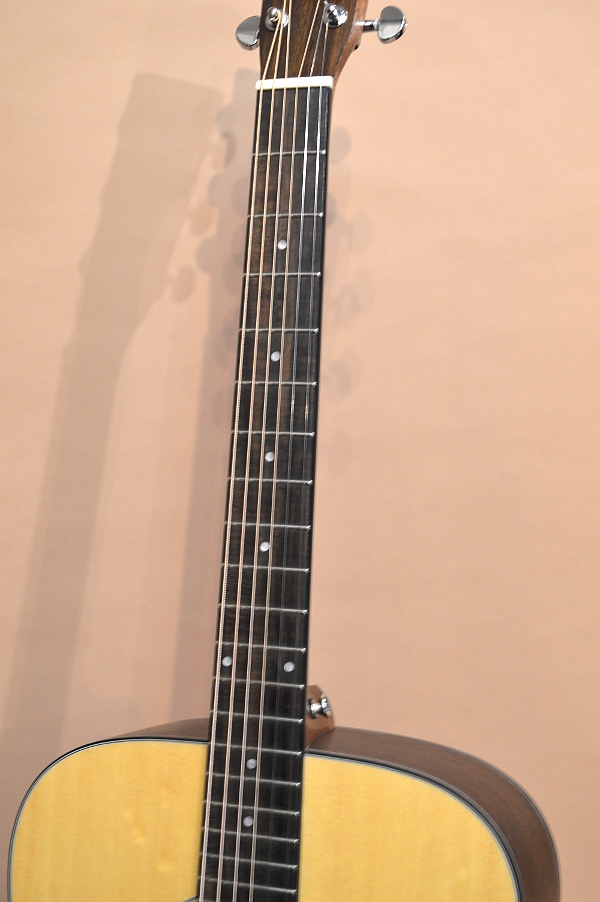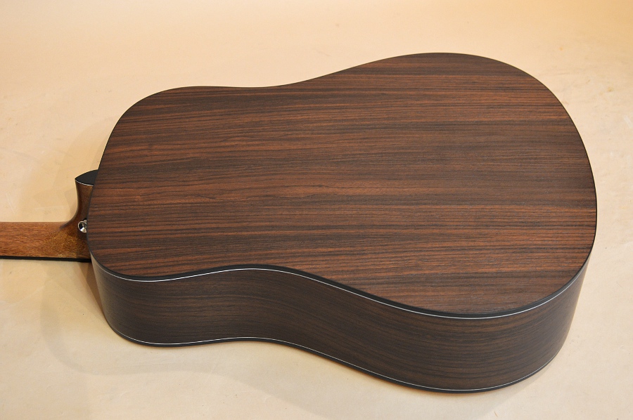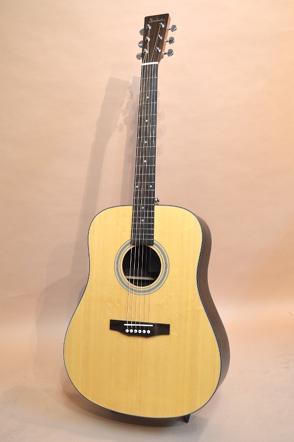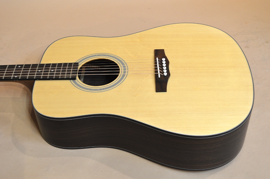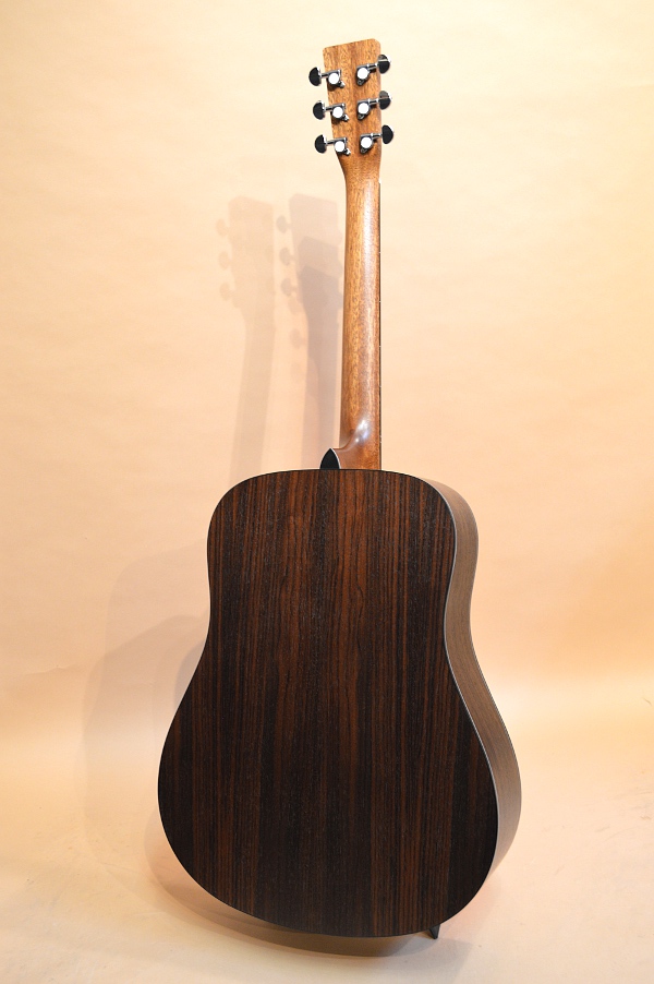 ソリッド・スプルースTOP、ラミネイト・ローズウッドSIDE&BACK、マホガニー系NECK、ローズウッド系指板&ブリッジ、スキャロップ・ブレーシング、実測43.1mmナット、650mmスケールのドレッドノート・ボディー。