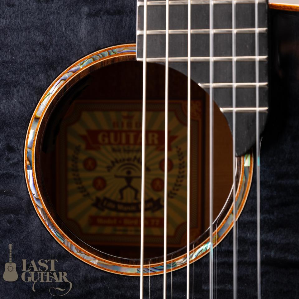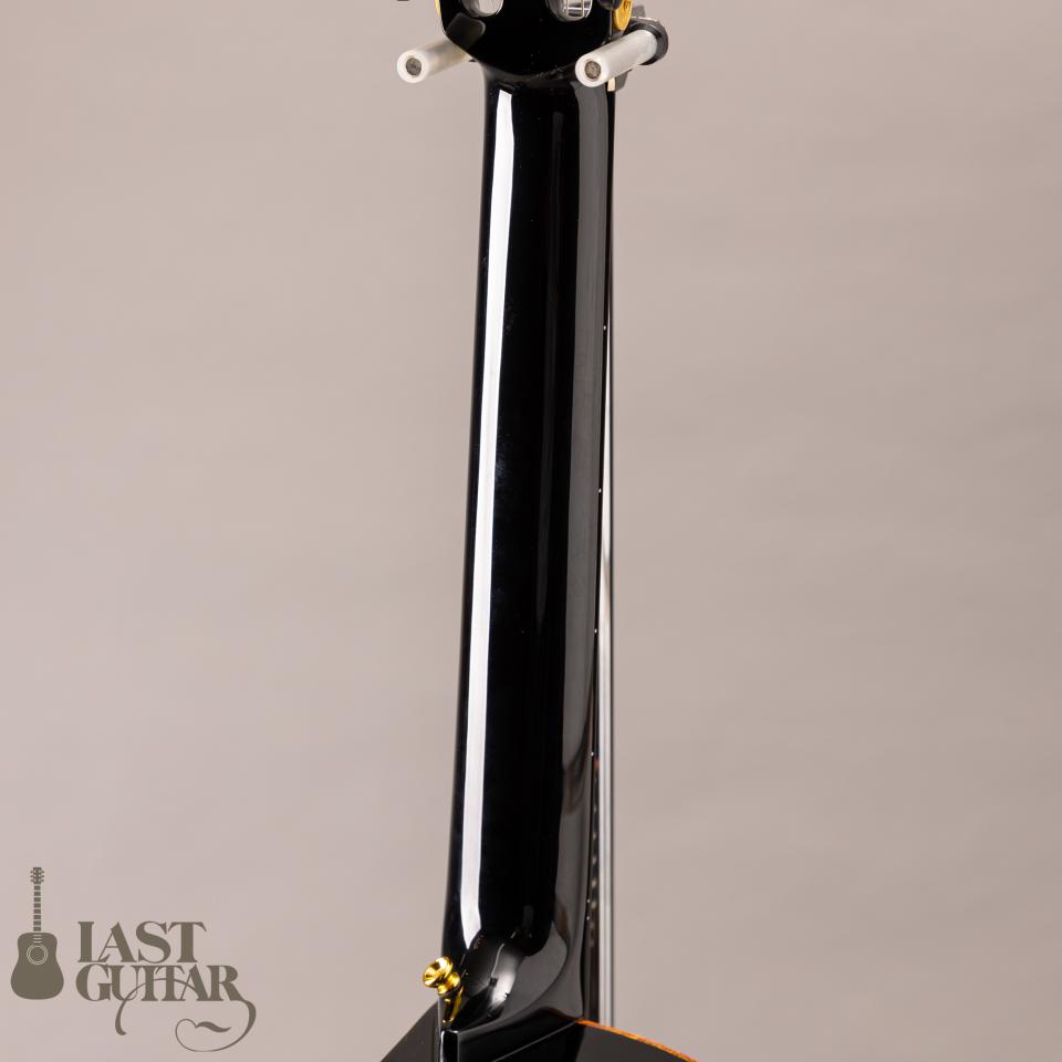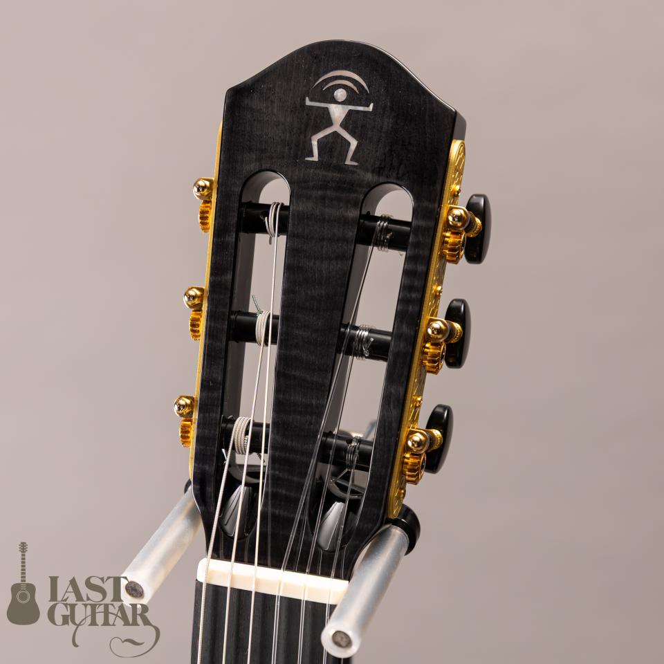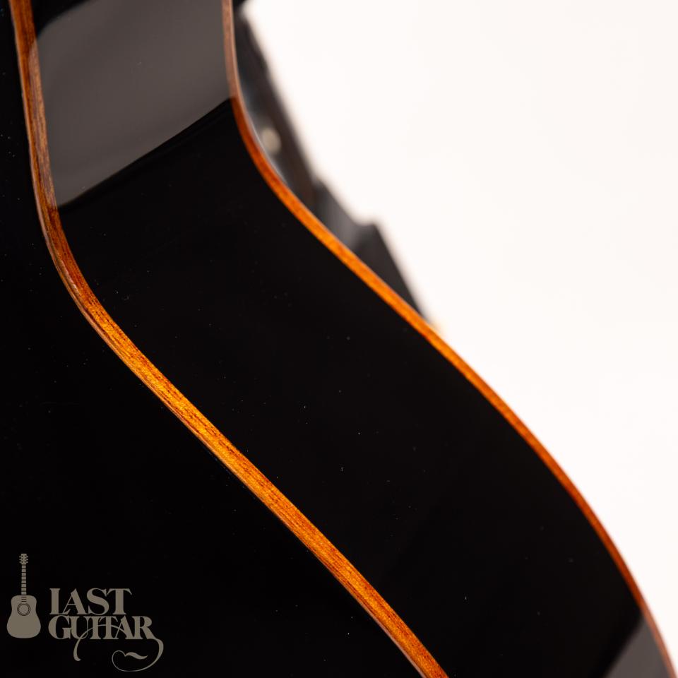トップには美しいフレイムのラミネートメイプルが採用されており綺麗なシースルーブラックカラーで仕上げられています。サイドバックには温かくまろやかなサウンドを意識してラミネートのマホガニー材が採用されています。所々に綺麗な装飾が施されステージ映えも間違いなしのルックスです。