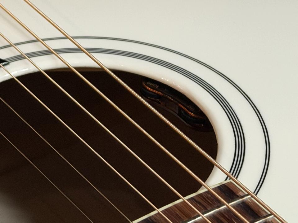 今回入荷した淀みない美しいホワイトカラーのHummingbird。サイド&バックは通常マホガニーとなりますが本モデルはメイプルを採用。ネックも2ピースメイプルでスケール以外はDove仕様。メイプル特有の甘さが加わりロングスケールが苦手でDoveを敬遠されていた方がいらしゃれば興味深い1本ではないでしょうか?