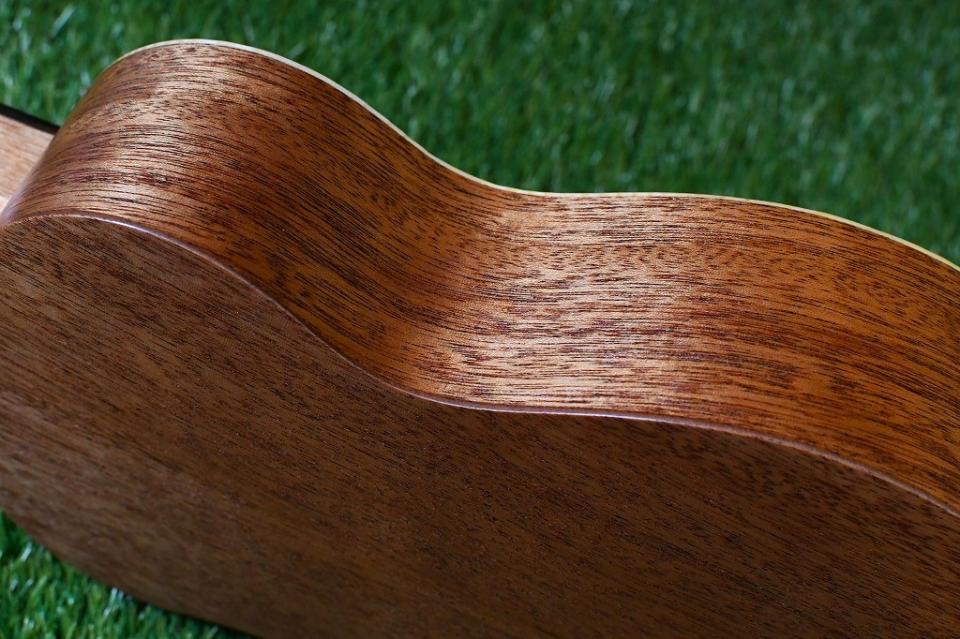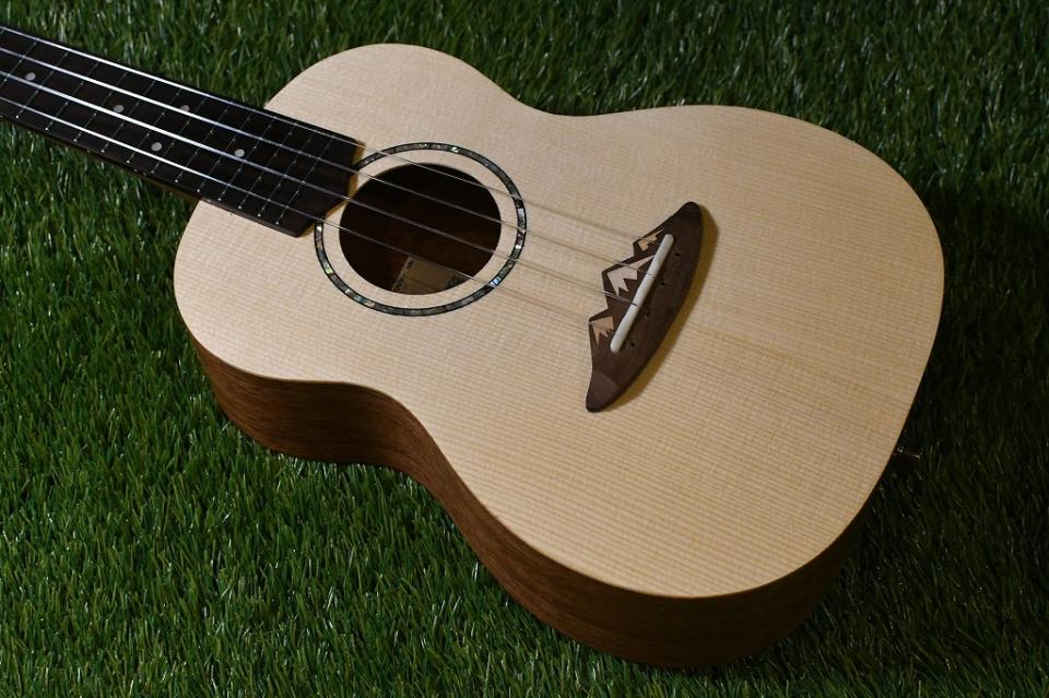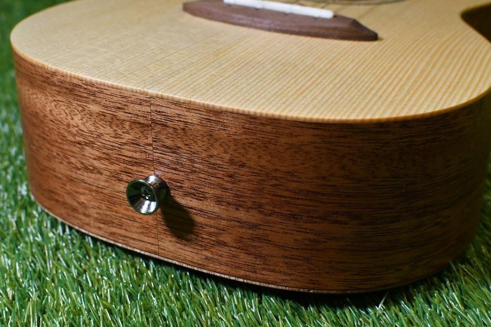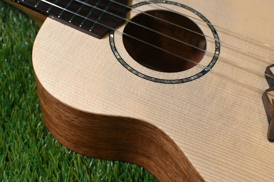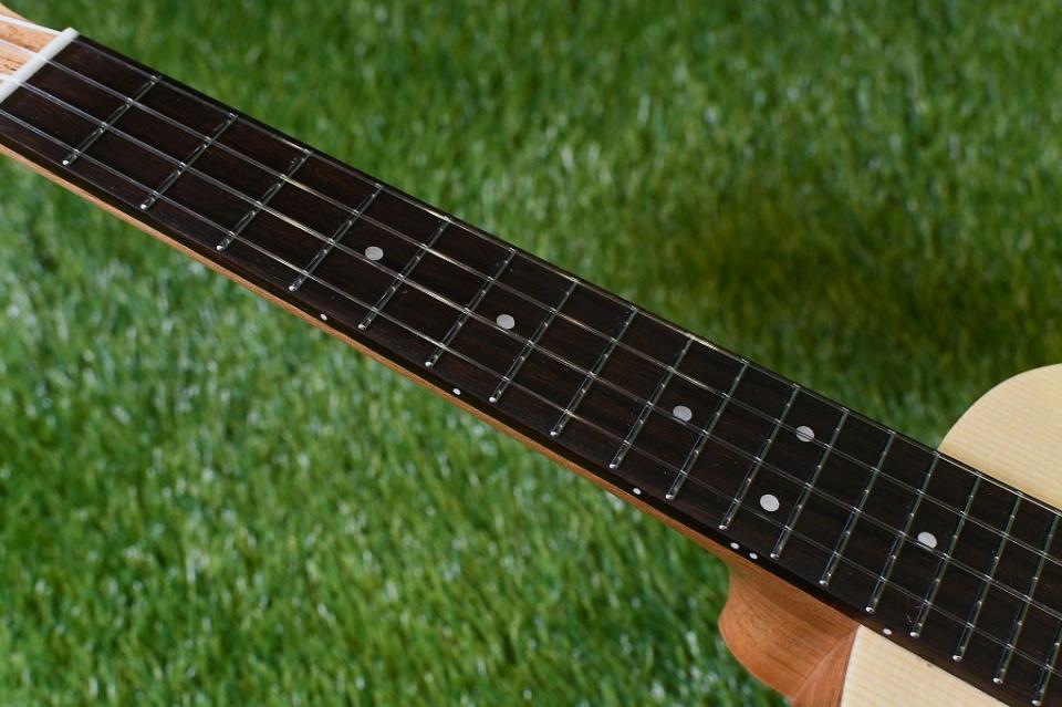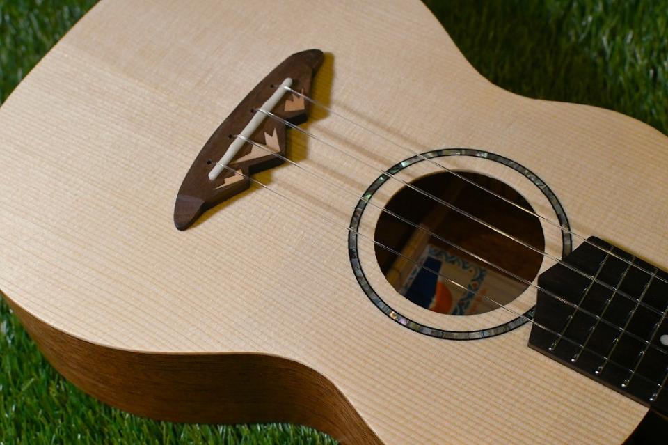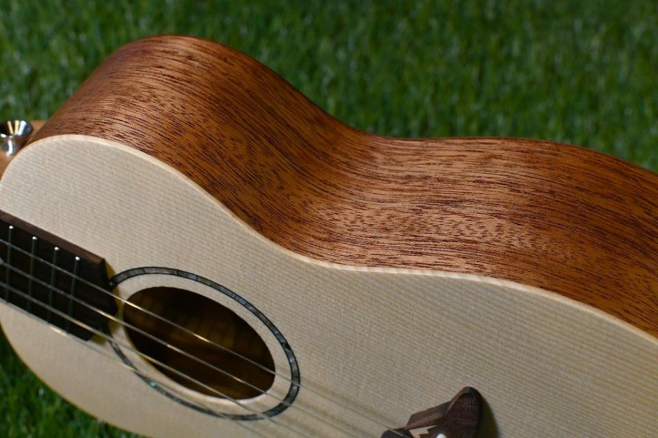 こちらのモデルはボディトップにスプルース、サイドバックにはマホガニーを使用したコンサートサイズ。