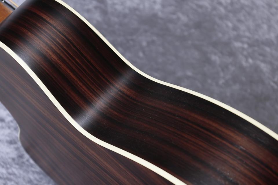 トップ材には厳選されたとーんうっどスプルースを採用し、繊細なタッチから力強いストロークまで幅広く応答。豊かな倍音とクリアなサスティーンが特徴で、弾き語りはもちろん、アンサンブルの中でも存在感を発揮します。