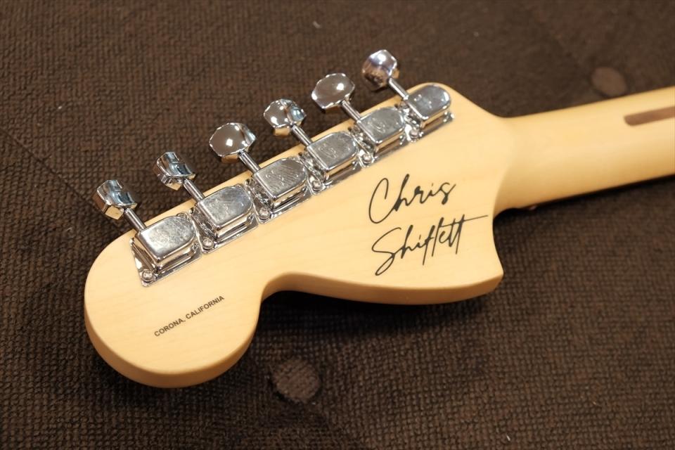 フー・ファイターズのギタリスト、クリス・シフレットの新シグネイチャーモデルの登場です。「The Cleaver(肉切り包丁)」と名付けられた本モデルはその名の通り、世界最大級の、怒涛のごとくラウドなフー・ファイターズのステージをクリスの極太なギターサウンドで切り裂いてきました。今までFender Custom ShopのMasterbuiltアーティストモデルとしてのみ提供されていたこのTelecaster? Deluxeが、Fender USA製のスタンダードラインナップとして加わりました。