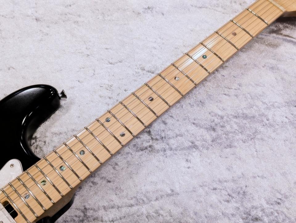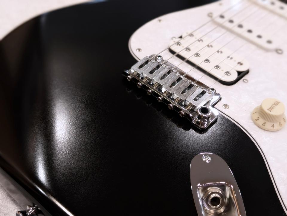 黒のボディとメイプルネック、白のパーツで構成され、誰にでもなじみのあるエレキギター然とした佇まい。