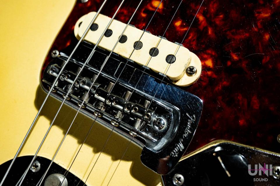 初期型にのみ見られるフラットポールピースのピックアップを搭載した、貴重なヴィンテージ・ジャガーです。