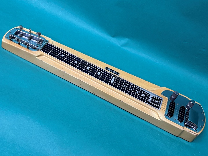 1960年代中期のダブル・ピックアップ、バランサー付きのDELUXE-6スティールギターです。クリーンで芯のあるトーンから甘さのある豊かな量感のあるサウンドまで、ビンテージフェンダーならではの質感の高いサウンドの楽器です。