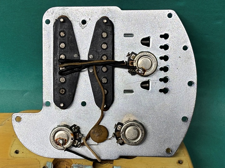 オリジナルピックアップ、ポットは1つが62年、あとが1964年製のオリジナルパーツです。オリジナルクルーソンペグの動作はスムーズで問題ありません。