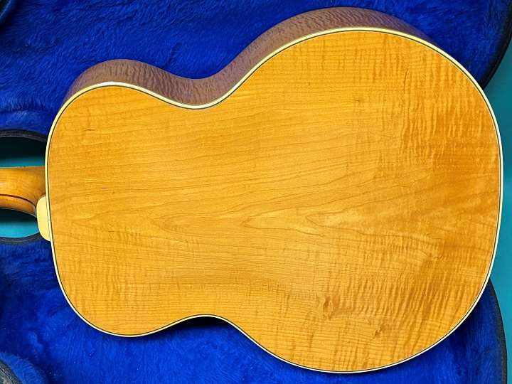 ラウンドバックの特徴で、音が前にしっかりと抜けますので、マイクの乗りも良く、弾いている本人以上に前で聞く音が素晴らしいと思います。