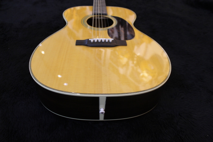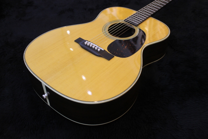 マーチン000-28の2023年製が入荷しました。000サイズのモデルは従来、ほとんど注目もされませんでしたが、クラプトンのアンプラグド以来人気も高まり、ドレットノートと比べてサイズも小さめで同厚も薄く、非常に抱えやすくて弾き易く、フィンガープレイにも向いている事等で000モデルは人気モデルとなったのです。小さめのボディながら抜けの良い煌びやかなサウンドはさすがマーチンといった感じです。