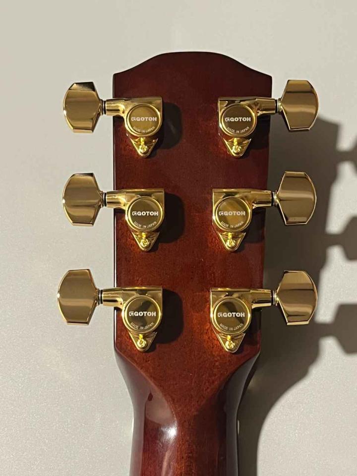 ボデイトップから指板・ヘッドと細部にまで入ったアバロンインレイがラグジュアリーな佇まいを完成させております。