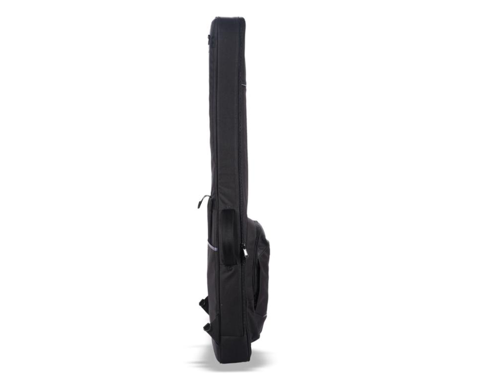 ネックの長さに応じて調節可能なネックピローやエンドピンプロテクターをはじめ、 バックパックストラップには肩ズレを防ぐチェストベルトなどを標準装備。 バックパックストラップを使用しない時はクリップを外して背面のポケットに収納可能で、Dリング・タブも両脇のスリットへ収納できるようになっています。