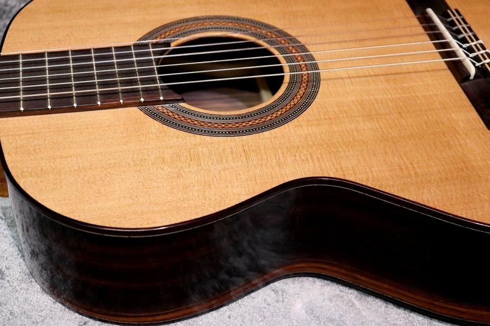 表面板に杉、裏横板にローズウッドを用いたクラシックギター王道のスペックといえるモデル。