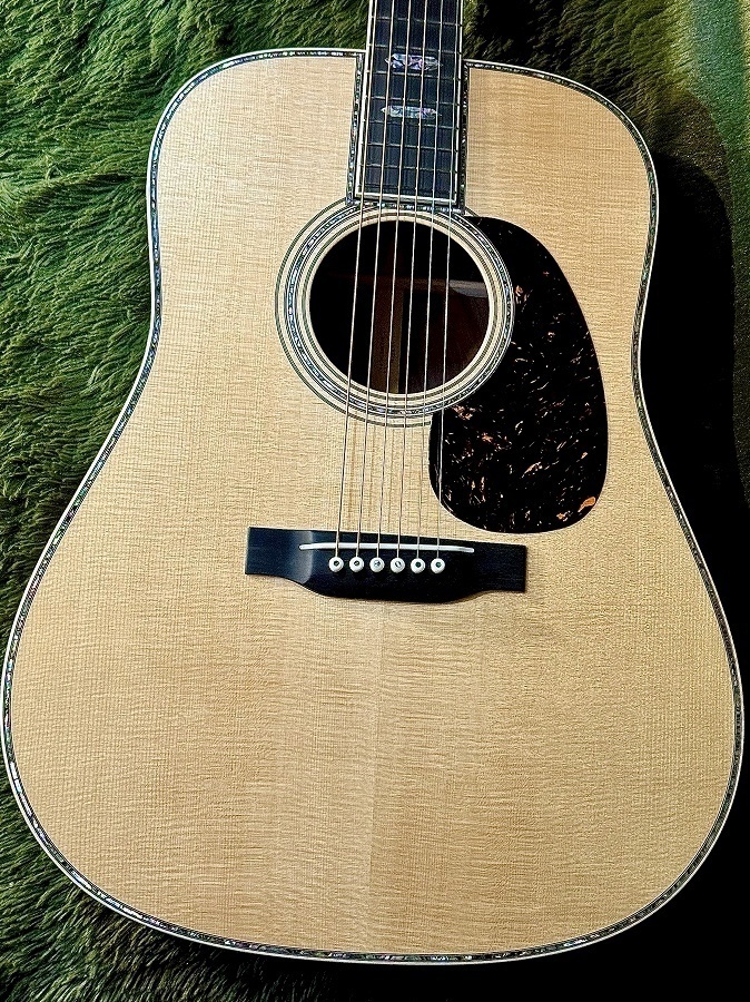 クリアフィニッシュで仕上げられたきめ細かいスプルースの杢目、Style45ならではの豪華絢爛なアバロンの装飾がさらに美しく昇華されている印象。