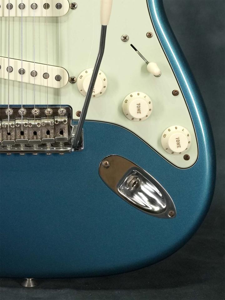 アルダーボディ、柾目のメイプルネック、色濃く目の詰まったスラブ貼りのローズウッド指板、近年ではハイポジションでのチョーキング時音詰まりを防ぐためにやや緩めな指板ラジアスが多い中で本器はオリジナル同様の7.25インチラジアスを採用。ピックアップはFender社にて50年以上に渡ってピックアップ職人として活躍し2013年に引退した「アビゲイルイバラ(Abigail Ybarra)」女史によるハンドワウンドのブラックボビン×3を搭載し、5-Wayセレクター+Volume+フロント&センターTone・リアToneの扱い易いコントロール。