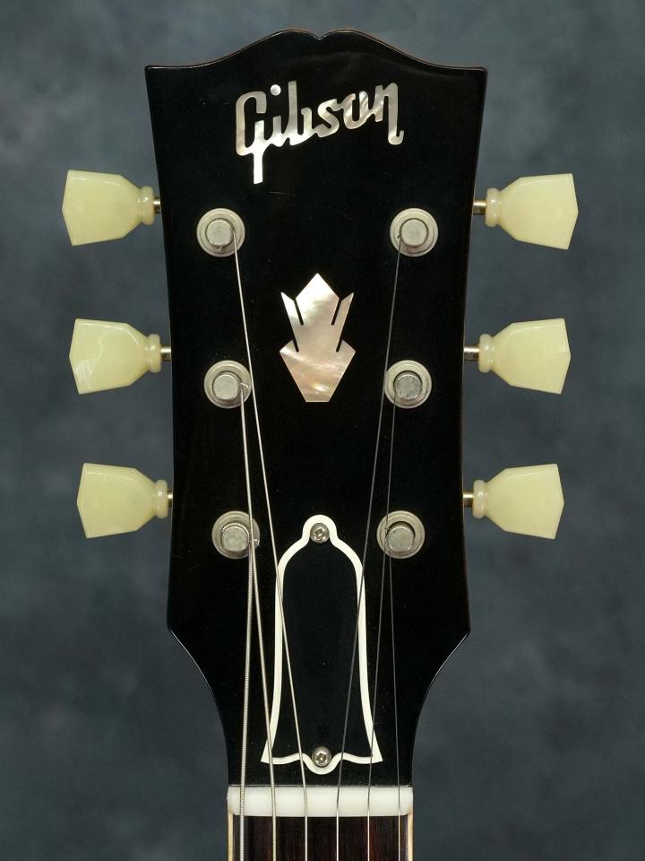 メイプル/ポプラ/メイプルよるセミアコースティックボディに、リアピックアップキャビティのセンターブロックに配線穴が開いていないソリッドなセンターブロック、ロングテノン(ディープジョイント)で適度に厚みを持たせたグリップ感の良いマホガニーネック、ローズウッド指板、ピックアップはフロント&リア共にアンポッテッドのCustombuckerを搭載し、2019年以降に採用された一層リアルなGibsonロゴなど現行モデルにも通じる高い再現度を誇ります。