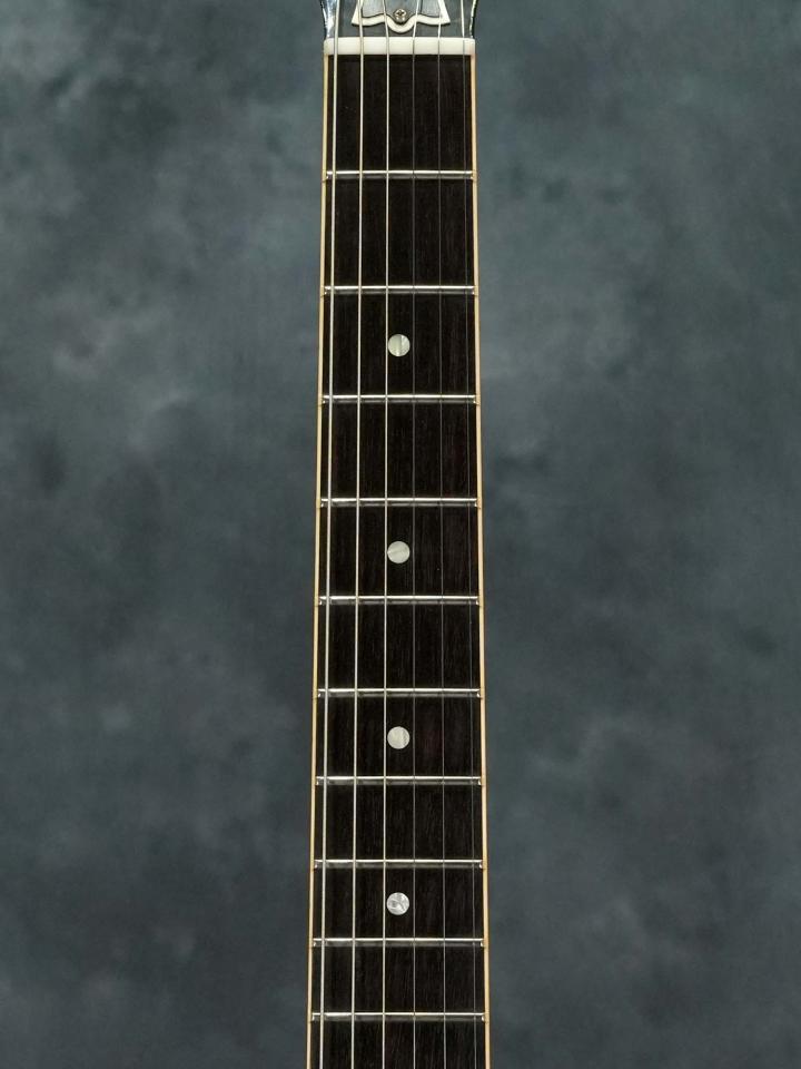 ネックはほぼストレートの丁度良い状態でトラスロッドの効きも良好、フレットは高音弦側のローポジションが極僅かに減っている程度で気になるようなビビりや音詰まりも無く、外観&演奏性共にコンディションは良好です。