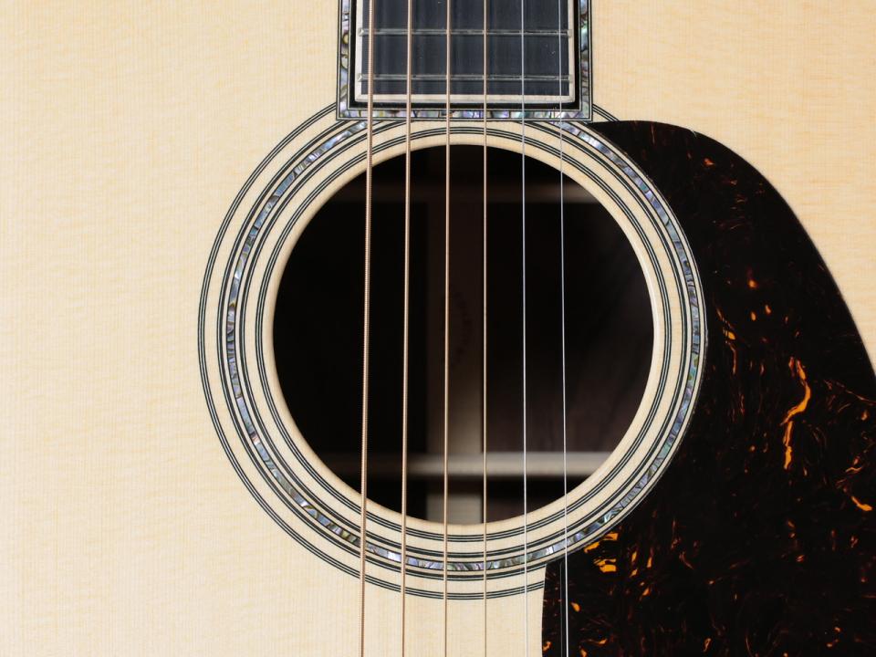 さらに、躍動感あるローズウッドの杢目を縁取るフレイム・メイプル・バインディングが、気品あるコントラストを生み出し、外観においても圧倒的な存在感を放ちます。細部に至るまで一切の妥協を許さない仕上がりは、まさにD-45の名に相応しい風格です。