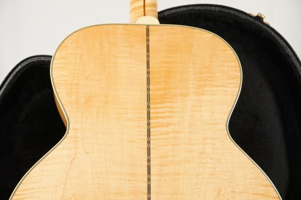 スーパージャンボサイズならではの豊かな低音と音量感に加え、メイプル材特有の歯切れの良さとクリアなレスポンスが加わり、ストロークではスケール感のあるダイナミックなサウンドを生み出します。コードを鳴らした瞬間の広がりと抜けの良さは、まさにSJ-200ならではの魅力と言えるでしょう。