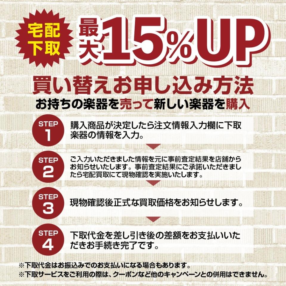 商品購入時、お持ちの楽器を下取りに出す事で買取よりも査定額10%UP!