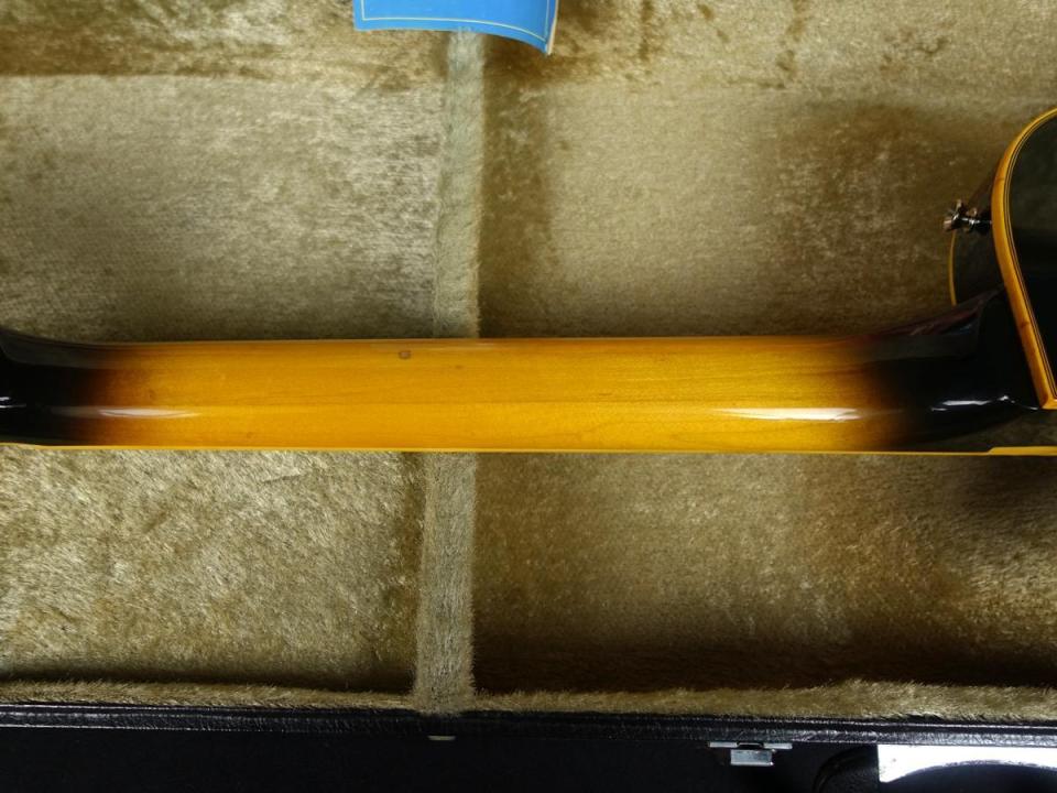 この頃の国産ギターではもはや宿命的とも言えるバインディングの劣化による崩壊が見受けられる他、全体的に使用に伴う弾きキズ、打痕、ジャックプレートのヒビ割れ、パーツの錆びやくすみも散見される等、年式相応の使用感があります。