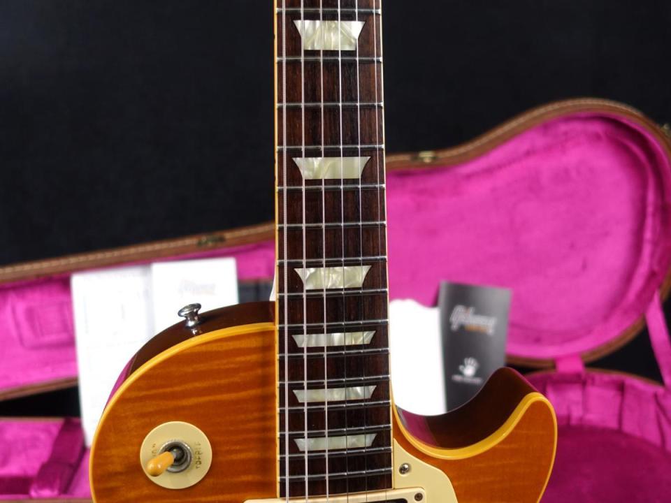 細部まで徹底的なリファインが行われた新生「True Historic(トゥルー・ヒストリック)」をベースとし、厳選されたメイプル材をトップに使用した「Historic Select(ヒストリック・セレクト)」現地カスタムショップファクトリーで材選定を行いハンドセレクトされた"Historic Select 1959 Les Paul Standard Reissue"、2015年製の中古品になります。