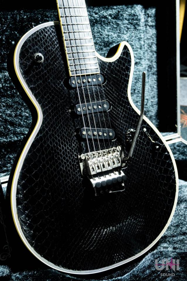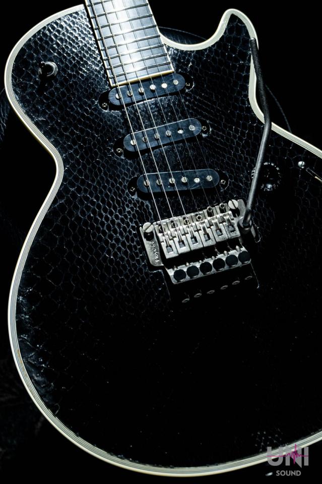 高級財布などで使用されるダイアモンド・パイソンですが、それをギターのトップに使うという発想が当時のルナシーの凄まじい勢いを物語っておりますね。