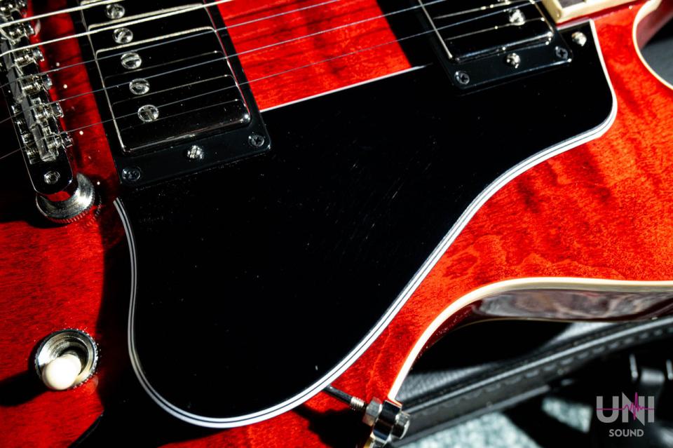 ただやはりどこかに箱鳴り感はあり、それがこのギターにしか出せない独特なサウンドを生み出し、それが単純に335のサイズダウンモデルではなく、このモデルの独自性を強くしております。