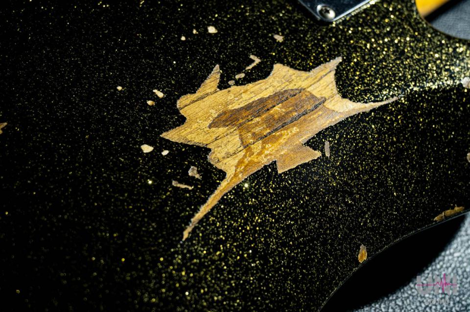 ハーレーを愛するJが、70年代のヴィンテージ・ヘルメットからインスパイアされ指定した唯一無二のブラックゴールドのカラーに、グレッグがオリジナルモデルと同様に施したレリック。リバースヘッド。ライブでのメイン機としての実用性を考慮した1.65インチのナット幅を採用した、硬質なワンピースメイプルネックと軽量のアッシュボディ、通常より巻き数を増やし、よりホットにチューニングされたハンドワウンドのピックアップの組み合わせがJの追求する膨よかなミッドレンジを生み出します。