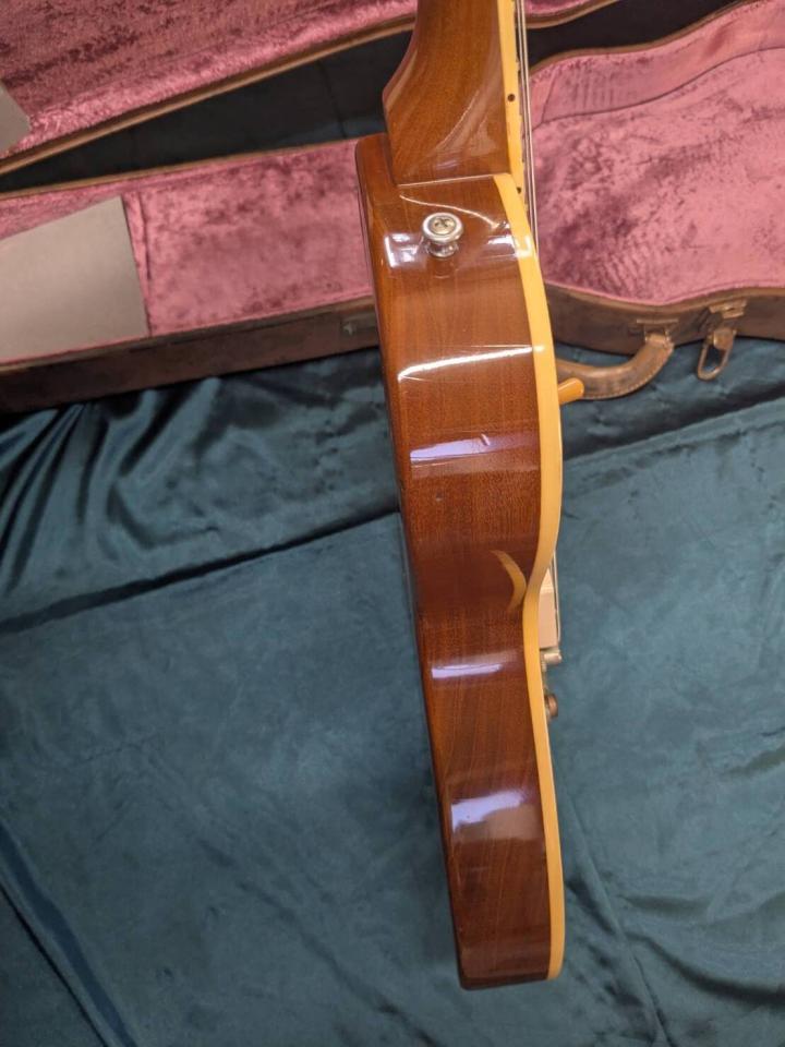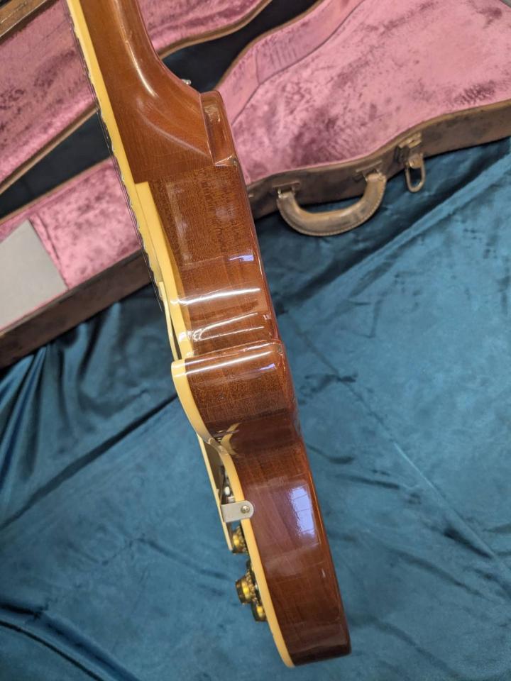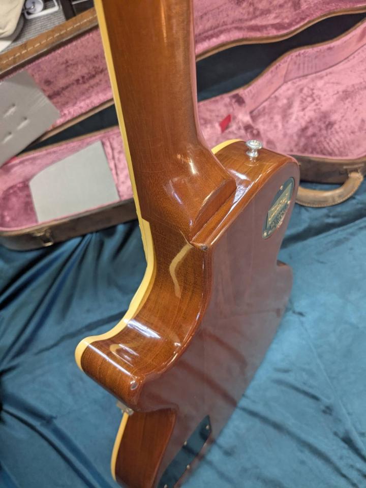 通常の1958リイシューは太めのネックですが、本モデルは1959年製に近いスリムなネック形状を採用しており、演奏性が向上しています。