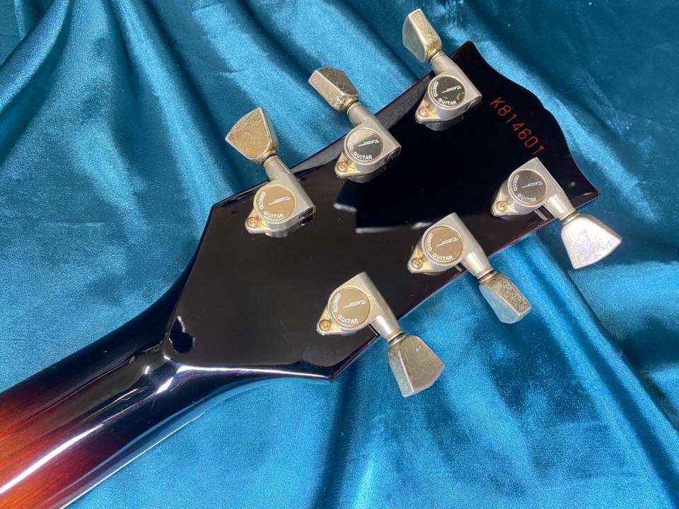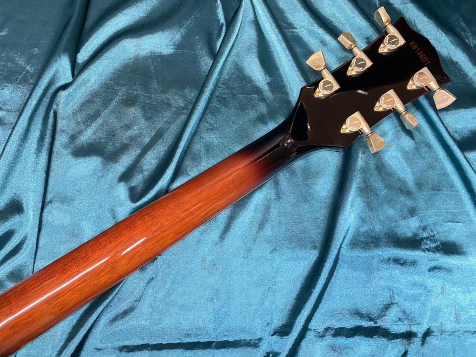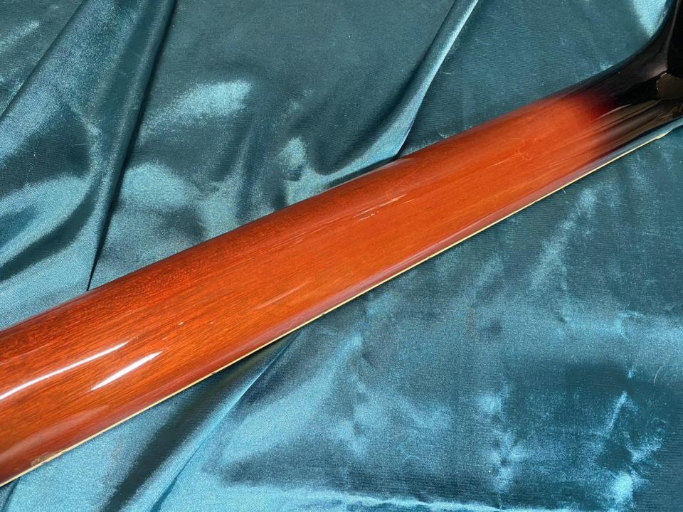 ごく僅かにネック裏とヘッド先端に塗装剝がれとボディバックのバックル付近の細かな傷やゴールドパーツにクスミは見られますが、大きなダメージはなく、年代物になりますが美品の部類に入る個体になります。