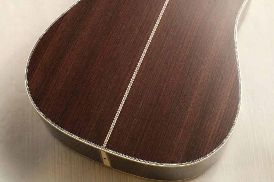 トップにはVTS加工が施されたプレミアムグレードのシトカスプルースに色味のついたAigingTonerの塗装、サイド・バックにも色味が濃く木目の美しいプレミアムグレードのインディアンローズウッドを使用しています。