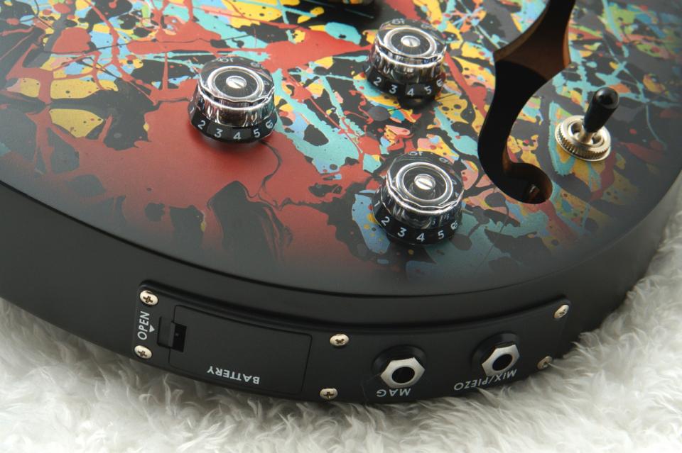 ホロウボディ特有のふくよかな鳴りを、マグネチックPUのパワフルなサウンドと、ピエゾPUのアコースティックな質感の両方で出力可能。