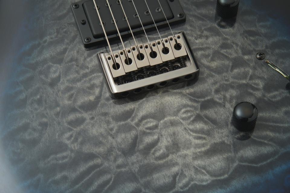 本モデル最大の特徴は、25.5インチのロングスケールと裏通しブリッジによる、ダウンチューニング時でも損なわれない絶妙なテンション感と分離感です。