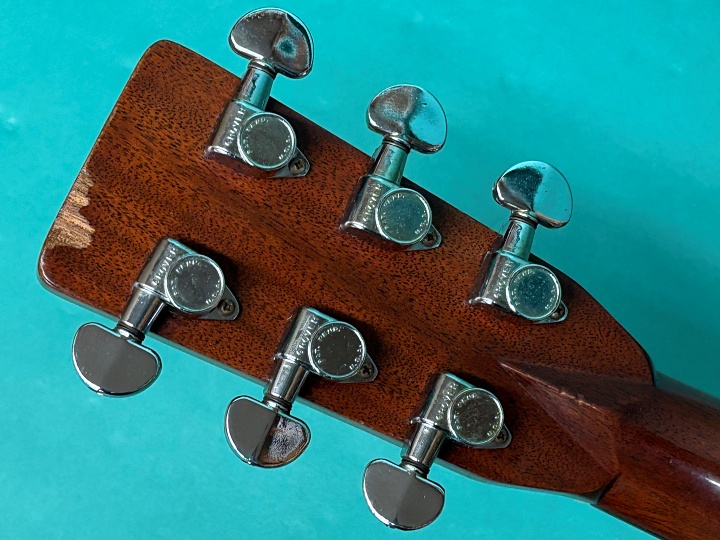 ナット幅は43mm(実測)。オリジナルのグローバー102C・ロトマチックペグで、くすみはありますが動作はスムーズです。