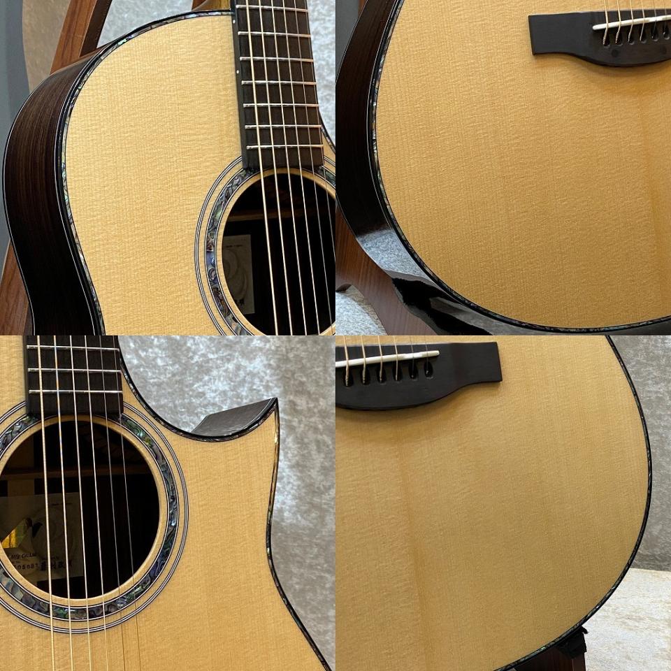 サイドバックをアフリカンマホガニーからインディアンローズウッドに。ヘッドストックもローズウッドに変えておりカッコいいです。ヘッドとボディをアバロン装飾で煌びやかに。