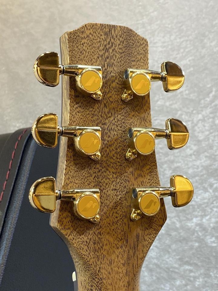 サイドバックをアフリカンマホガニーからインディアンローズウッドに。ヘッドストックもローズウッドに変えておりカッコいいです。ヘッドとボディをアバロン装飾で煌びやかに。