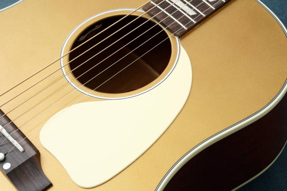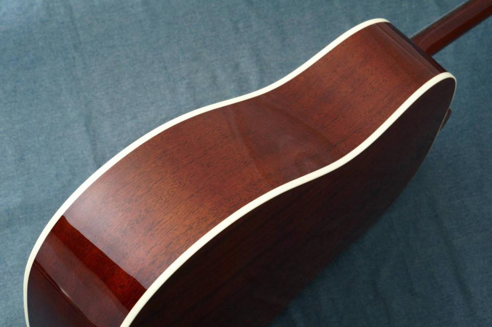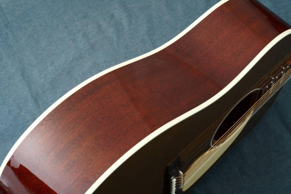 J-45 Standardをベースにディッシュインレイのポジションマーク、キーストーンタイプのペグ、アイボリーカラーのピックガード仕様。
