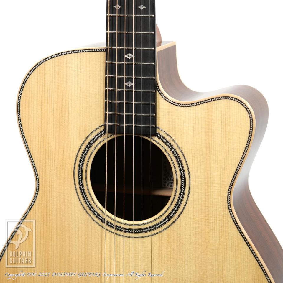 その他:ベネチアンカッタウェイ、43mmナット幅、645mmスケール、牛骨ナット・サドル、メイプルバインディング