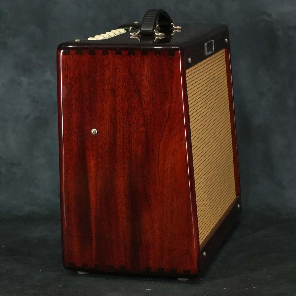 キャビネット&スピーカーが変更されている事で、中音域にクセがありややもたつきを感じるレギュラーモデルに比べてスッキリとした輪郭の有る音色、さらにマホガニーキャビネットによるデザイン性の高さはインテリアとしても存在感抜群で、ご自宅練習用やスタジオ練習で活躍するチューブアンプをお探しの方にオススメの一台です。