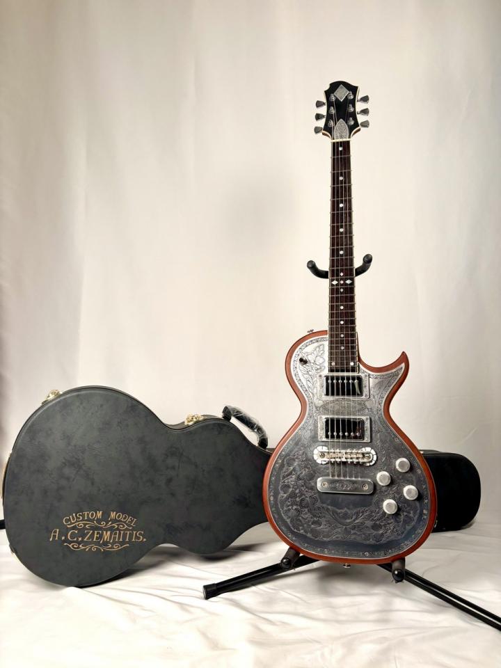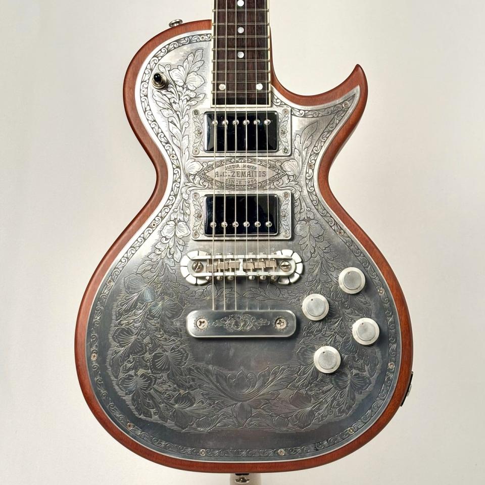 ZEMAITIS(ゼマティス/ゼマイティス):トニー・ゼマティスが1955年に作った独自デザインのエレクトリックギターから始まるイギリスのブランドで、彫刻師ダニー・オブライエンによる彫金が特徴。トニーの他界後は神田商会のもとで再興され、主要モデルはMF(メタルフロント),PF(パールフロント,DF(ディスクフロント),SUPERIOR(スーペリア)など。(ZEMAITIS/ゼマティス/ゼマイティスのキーワード検索結果はこちら)