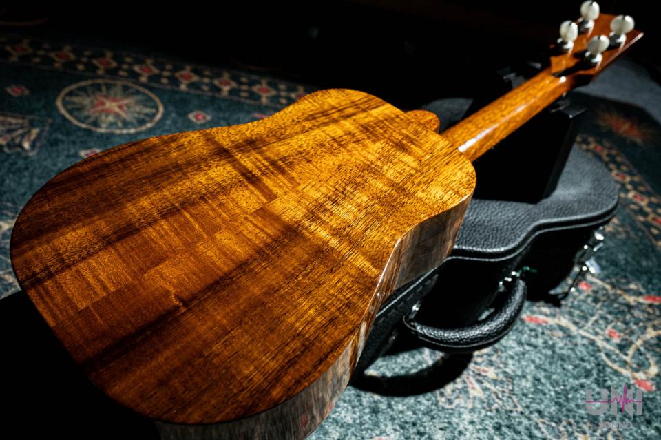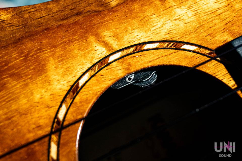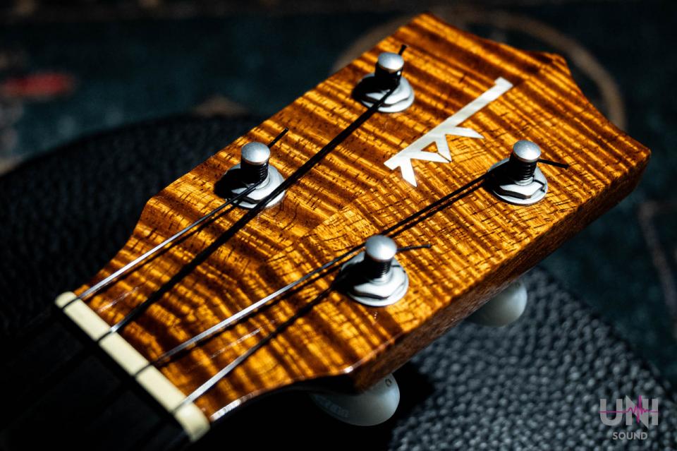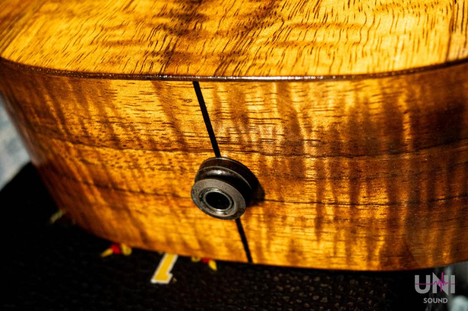 ボディは木目が美しい単板のハワイアンカーリーコア材で作られています。