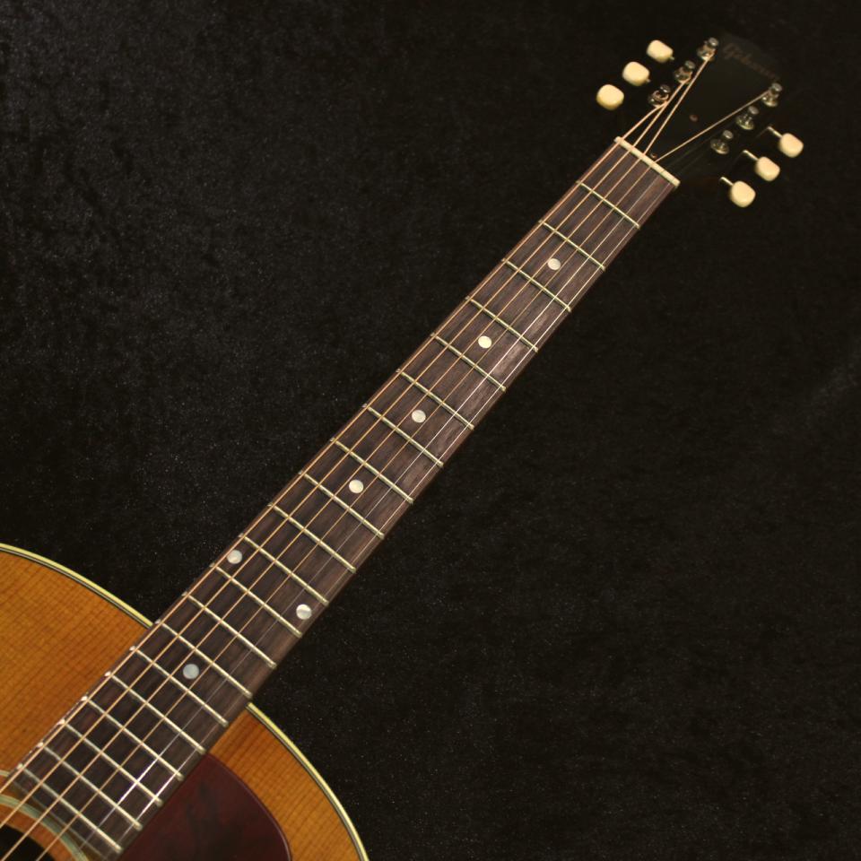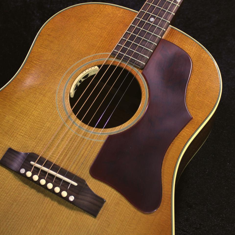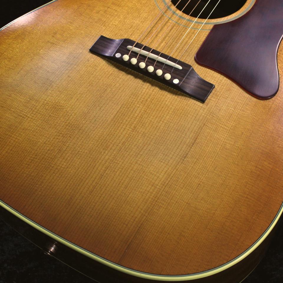 その他、ラージ・サイズの20フレット仕様のローズウッド指板には、マザー・オブ・パールのドット・ポジションマーク・インレイがあしらわれ、ローズウッドのベリーアップ・ブリッジとボーン・サドル、ゴトー社製のクリーム・チューナー等、60年代のJ-45の特徴を兼ね備えています。