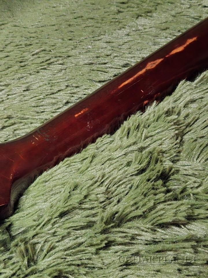 年式相応に塗装のウェザーチェックや、背面のバックル傷、サウンドホール周りのタッチアップ、塗り込みピックガードの宿命とも云えるガードクラック(裏面から補修済み)など見られます。